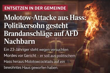 In Baden-Württemberg steht ein 23-jähriger Mann vor Gericht, weil er mehrere Brandanschläge auf Nachbarn verübt haben soll. Dabei setzte er offenbar Molotowcocktails ein und nahm in Kauf, dass Menschen zu Schaden kommen könnten. Laut Ermittlungen könnten politische Motive eine Rolle gespielt haben, da der Angeklagte eine starke Abneigung gegenüber der AfD gehabt haben soll. Der Mann hat die Taten gestanden, nun muss das Gericht klären, wie genau es zu der Eskalation kam und wie schwer die Schuld wiegt.