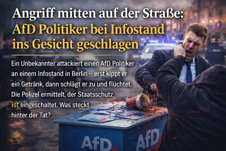 Ein unbekannter Angreifer attackiert einen AfD Politiker an einem Infostand in Berlin. Die Polizei ermittelt und der Staatsschutz ist eingeschaltet. Was steckt hinter dieser gewalttätigen Tat?