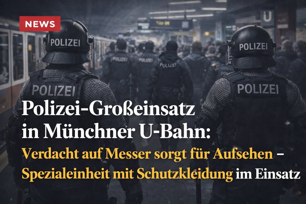 Ein ungewöhnlicher Polizeieinsatz hat am Donnerstagabend für Aufsehen im öffentlichen Nahverkehr von München gesorgt. Auslöser war die Meldung über eine Frau, die in einer U-Bahn ein Messer bei sich getragen haben soll. Die Situation führte zu einem schnellen und umfangreichen Einschreiten der Sicherheitskräfte – inklusive speziell ausgerüsteter Einheiten.